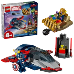 با لگو مارول 76319 وارد یکی از هیجان‌انگیزترین نبردهای دنیای مارول شوید! این ست اکشن، بازسازی صحنه‌ای پرهیجان از مبارزه کاپیتان آمریکا با تانوس را فراهم می‌کند. این محصول مناسب کودکان، نوجوانان و کلکسیونرهای عاشق لگو و دنیای مارول است.